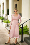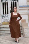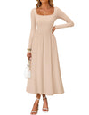 This classic long-sleeve midi dress shines with clean, purposeful design: a square neck frames the collarbone, a V-waist cinches gently, and a fitted top flows into a flared skirt—all in a sleek, solid hue. Slim yet comfortable, it balances structure and softness, letting timeless style speak simply