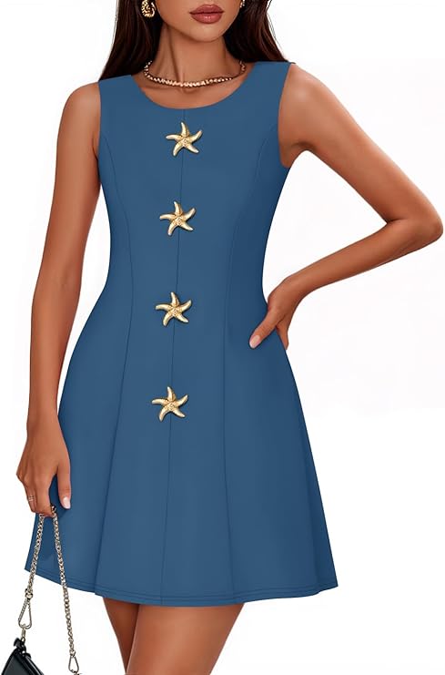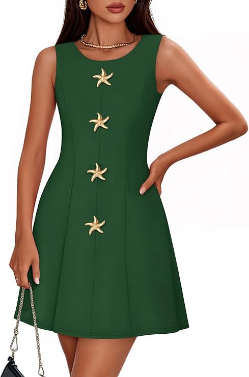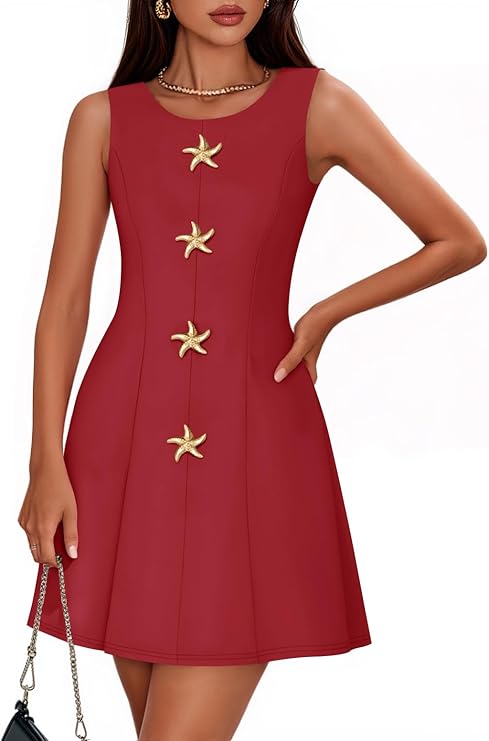 ZESICA Women's Elegant Sleeveless Mini Dresses 2026 Summer Crewneck Formal Business Cocktail Party A Line Short Dress