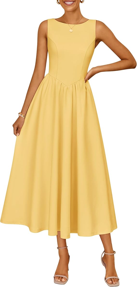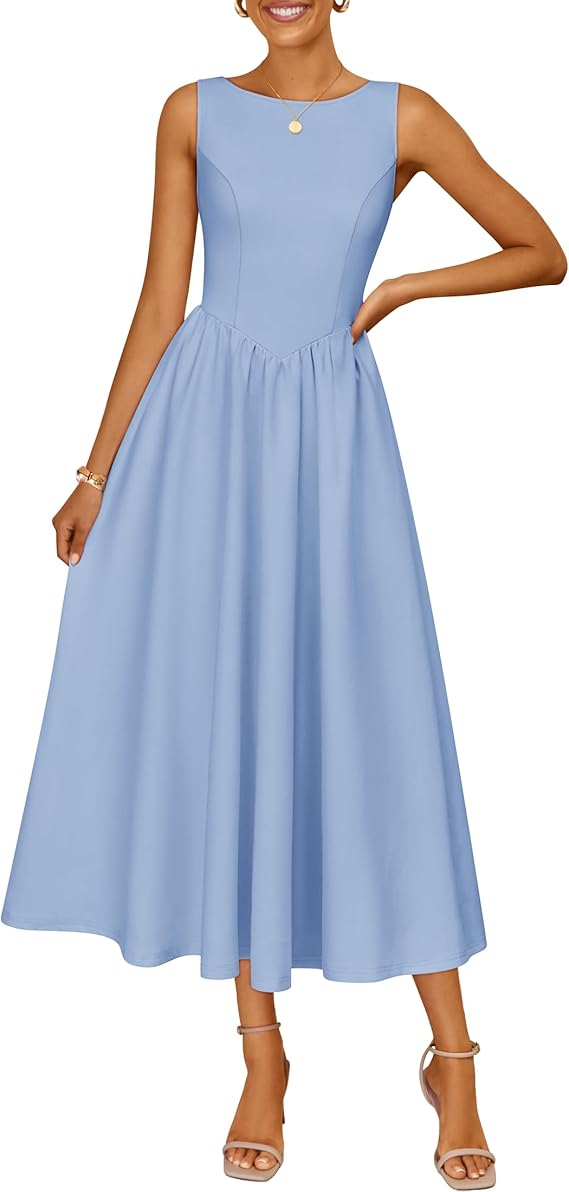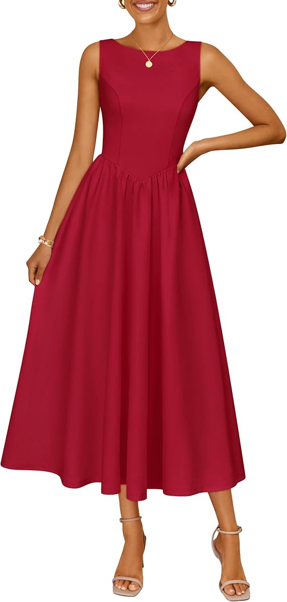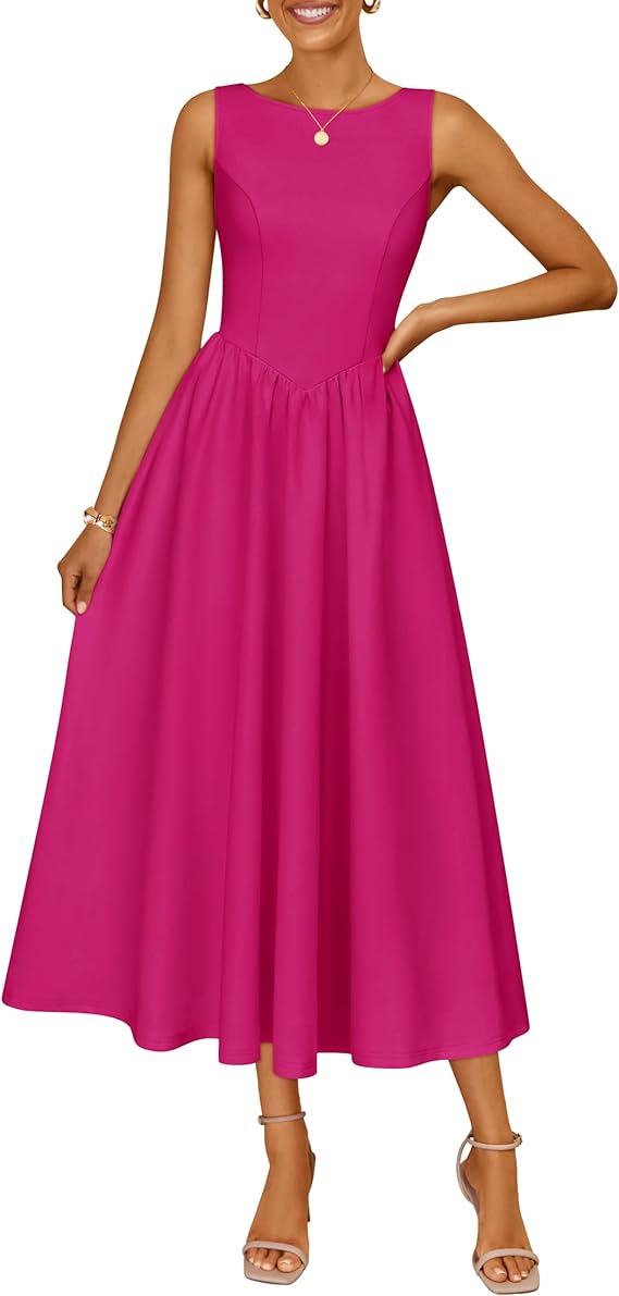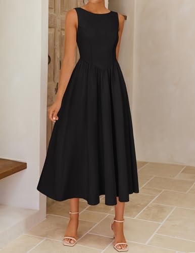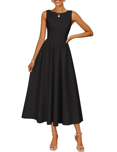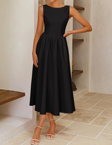 ZESICA Women's Summer Elegant Sleeveless Midi Dresses 2026 Wedding Guest Cocktail Party Crewnenck Flowy A Line Long Dress
