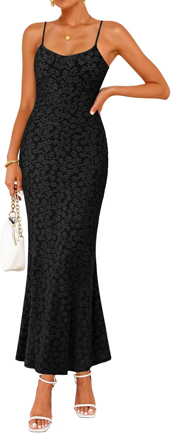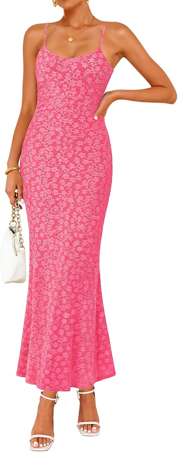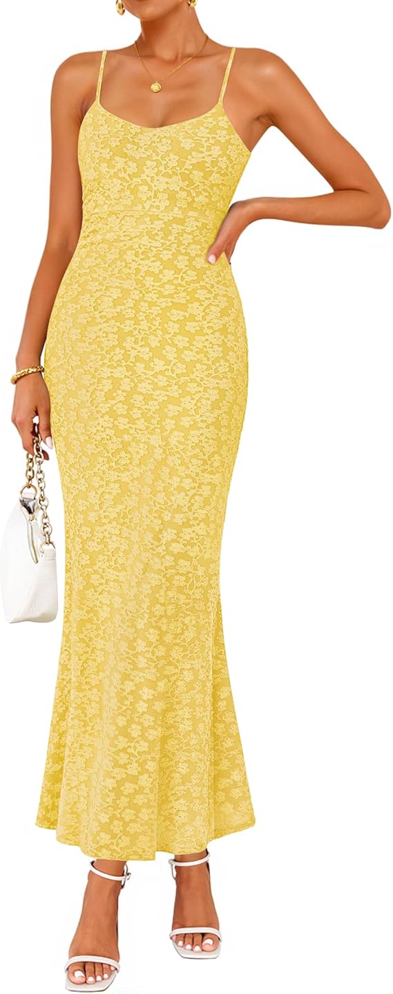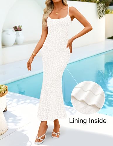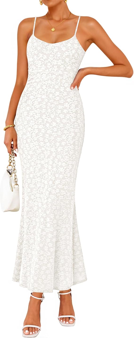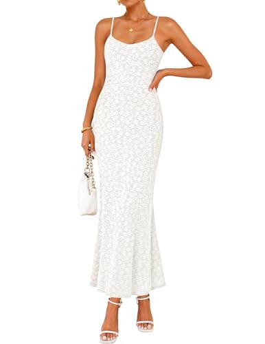 ZESICA Women's Summer Floral Spaghtti Straps Midi Dress 2026 Bodycon Sleeveless Square Neck Casual Beach Long Dresses