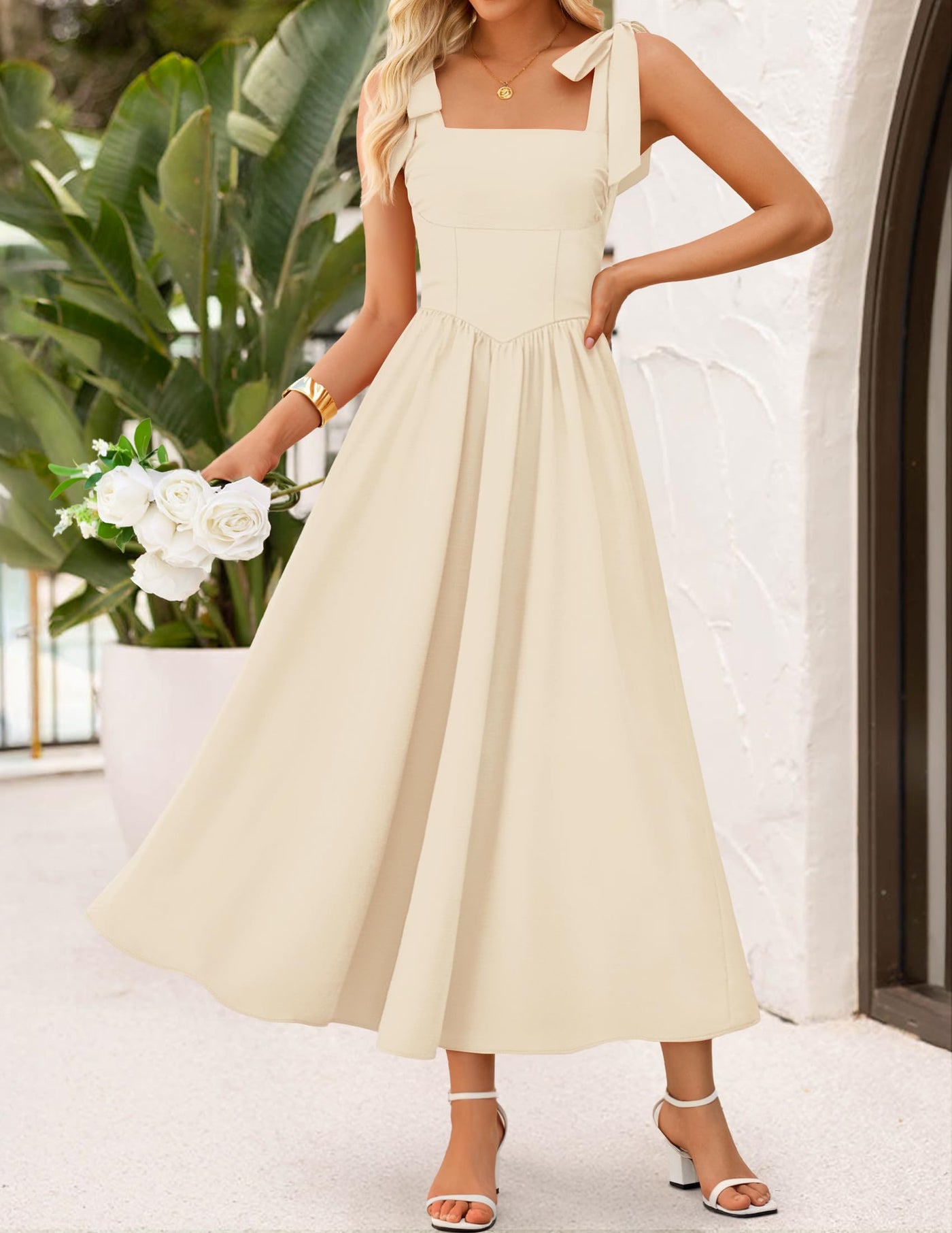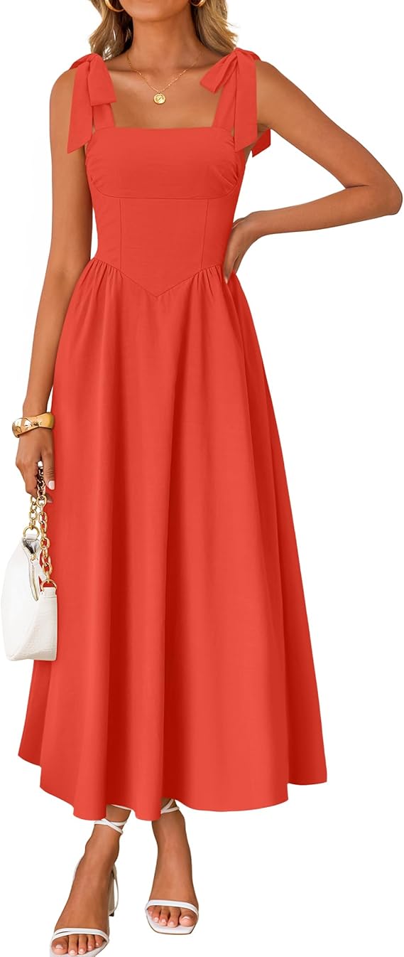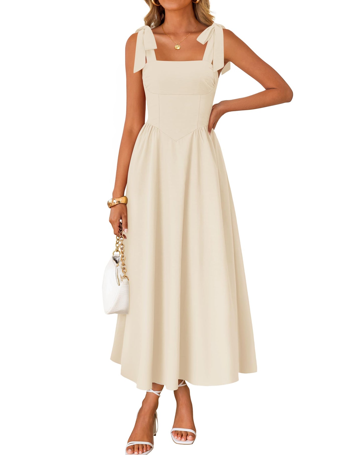 ZESICA Women's Summer Spaghetti Strap Maxi Dress 2026 Tie Shoulder Square Neck Flowy Wedding Guest Party Beach Long Dresses