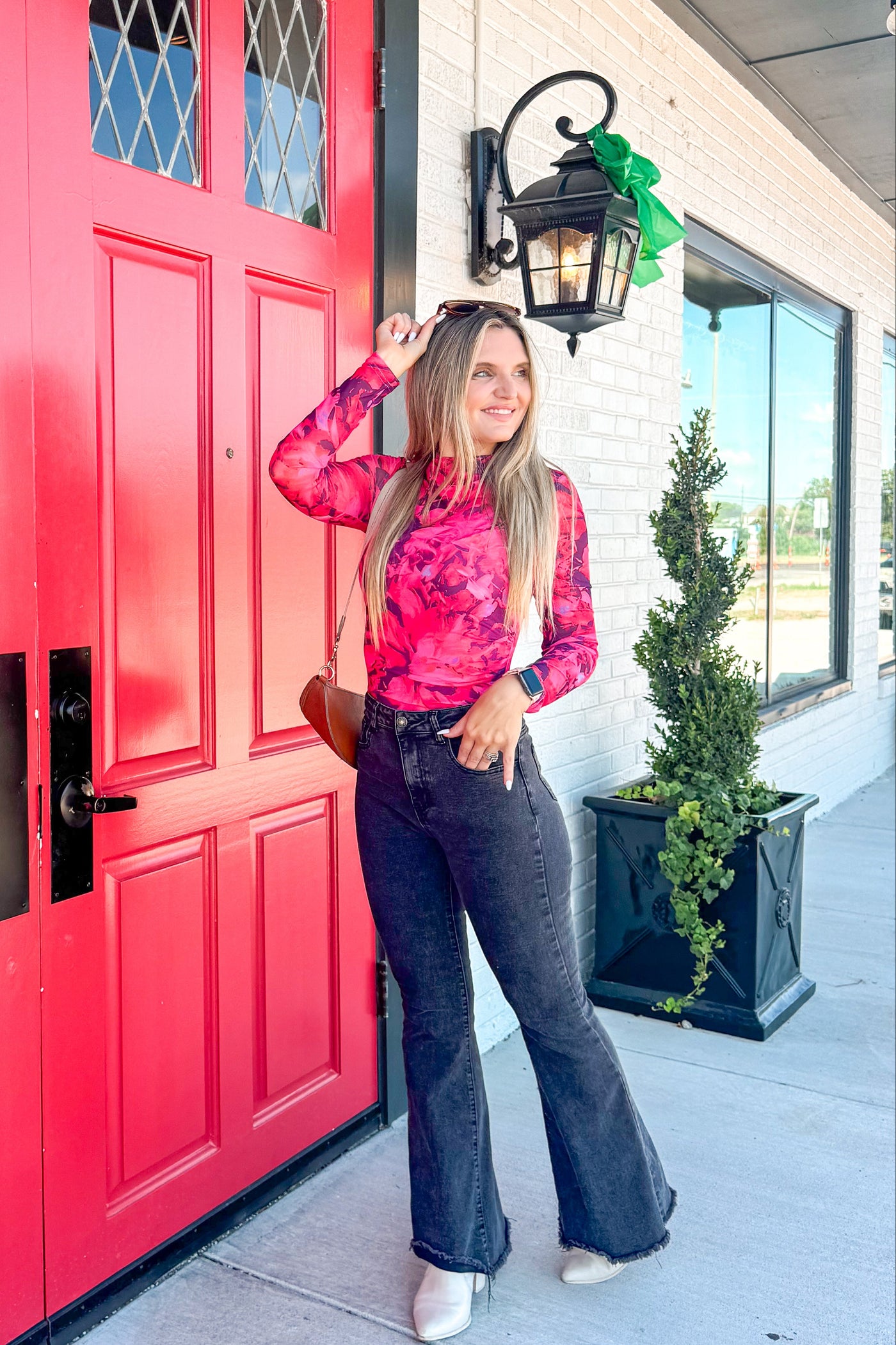 Material: This floral print top is made from a lightweight, breathable mesh fabric, striking the great balance between stylish coverage and subtle allure. It has a slight stretch, providing comfort and warmth in the fall and winter seasons while maintaining a fashion-forward look
