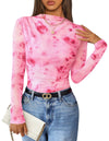 Features: long sleeve tops for women with an elegant mock neck design, a slim fit cut, and ruched details that accentuate your curves. The fashionable tie-dye color blocks and floral prints give you a stylish and sexy look. Can be worn alone or layered