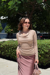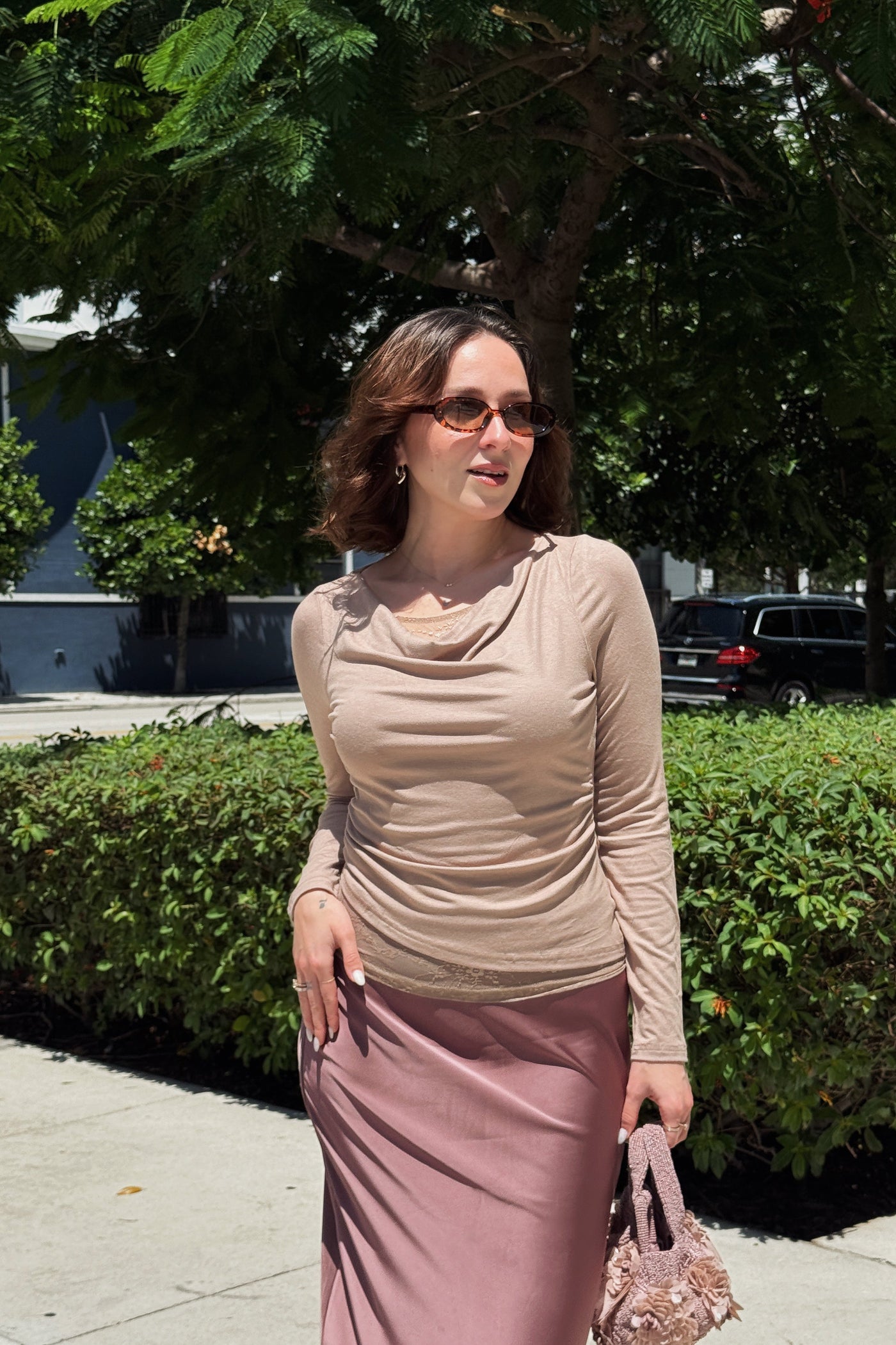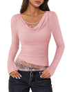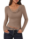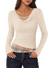 Design: With elegant long sleeves, a graceful cowl neck for sophistication, and delicate lace lining for a feminine touch, the slim fit cut ensures a flattering shape. This makes it ideal for transitional fall weather and everyday styling.