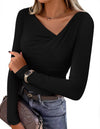 Stylish Design: Our dressy casual blouses feature a trendy asymmetrical diagonal V-neck and ruched details, adding a touch of modern fashion to your everyday outfits. Slim flattering fit t-shirts are designed to enhance your curves, making you feel confident and stylish. Great as business casual tops, sexy going out tops, casual holiday tops, Thanksgiving shirts, Christmas shirts, and more.