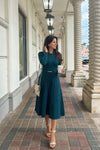 Design: This knit sweater dress features a timeless crew neck, long sleeves, and a subtly pleated skirt. The removable belted waist accentuates your silhouette , while the skirt drapes gently for a sophisticated look, ideal for fall and winter.