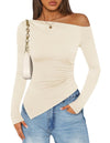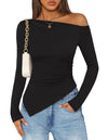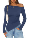 Features: long sleeve tops for women, off the shoulder tops, fall tops, y2k tops, asymmetrical tops, fashion ruched tops, solid color, one shoulder, sexy slim fit, undershirt for women, going out tops, womens tops dressy casual, black tops for women, white long sleeve shirts, navy blue tops