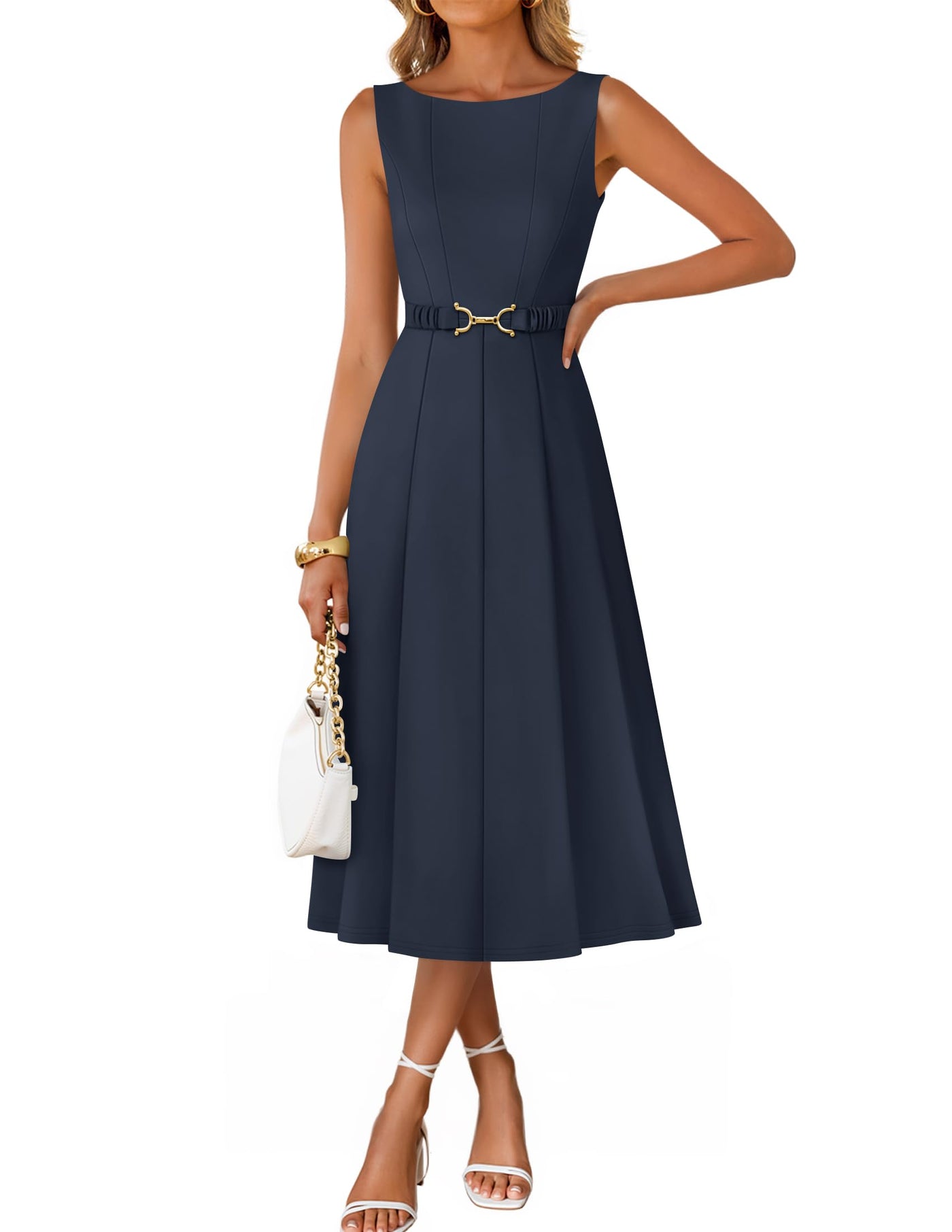 Features: sleeveless dress for women, summer dress, midi dresses for women, tank dress, business casual dress for women, a-line dresses for women, flowy dresses for women, high waisted dresses for women, elegant, classy dresses. This summer midi dress has adjustable metal buckle belt at the waist, freely adjustable to better accentuate your body's curves. It includes a hidden back zipper and two side pockets, practical and convenient without sacrificing elegance