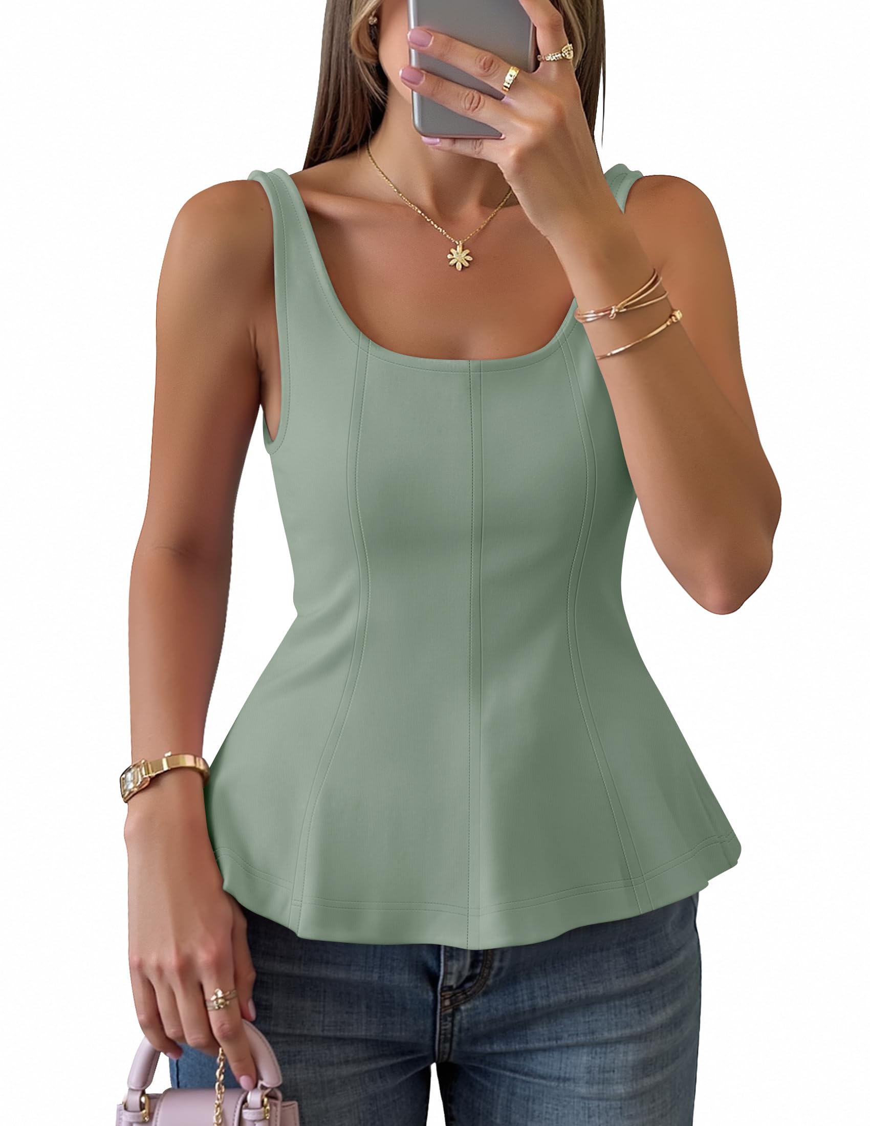 ZESICA Women's 2026 Summer Sleeveless Vest Top Square Neck Cute Casual Tank Tops Fitted Going Out Trendy Outfit
