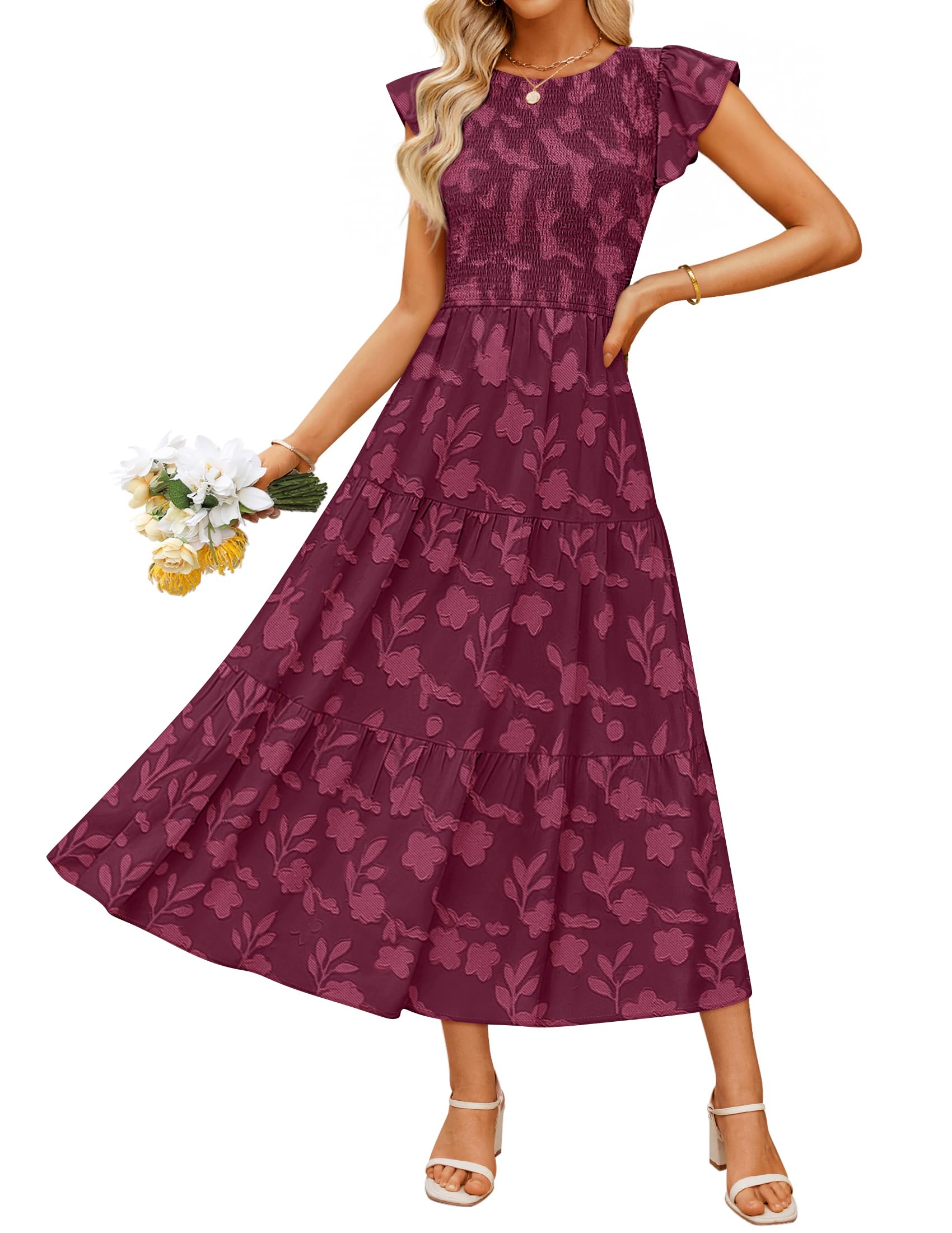 Features: Summer dresses for women, boho dresses, floral dress, casual dresses, short sleeve midi dresses, classy smocked dress, swing flowy dresses, beach vacation dresses, tiered wedding guest dresses, pink dress, blue dress, easter dresses, spring dresses, maternity dress
