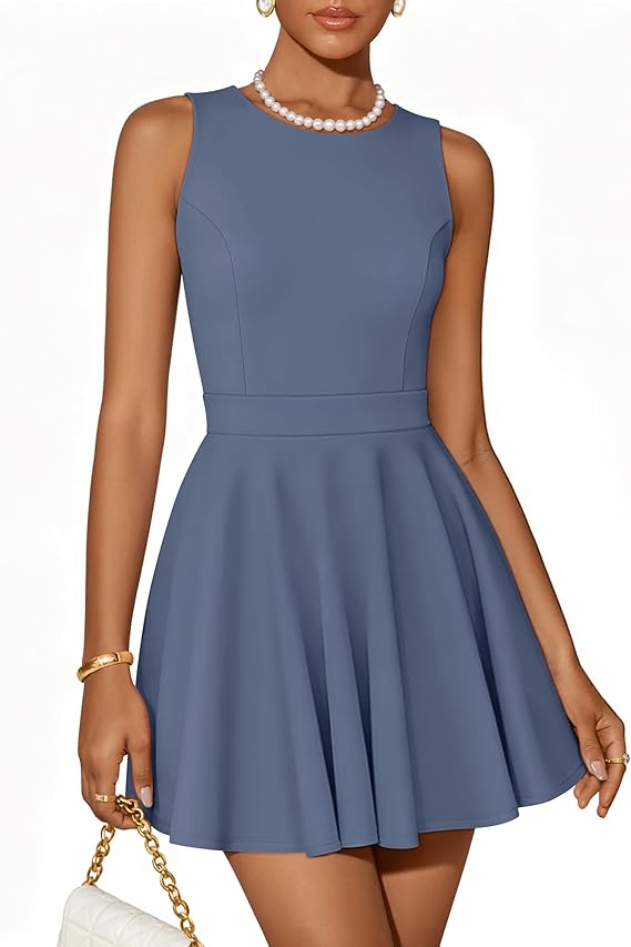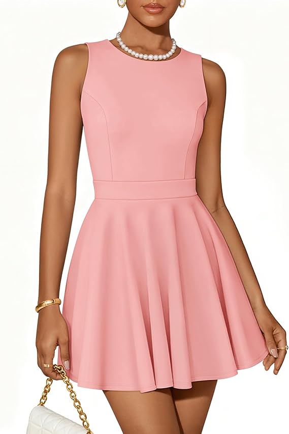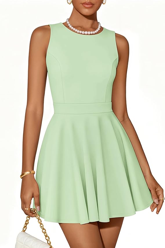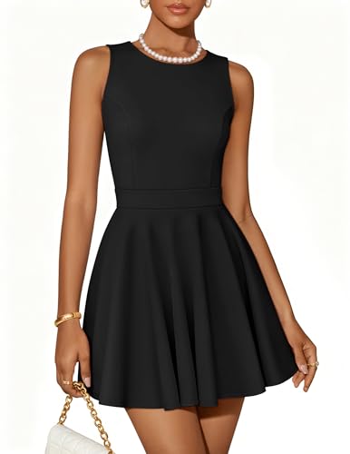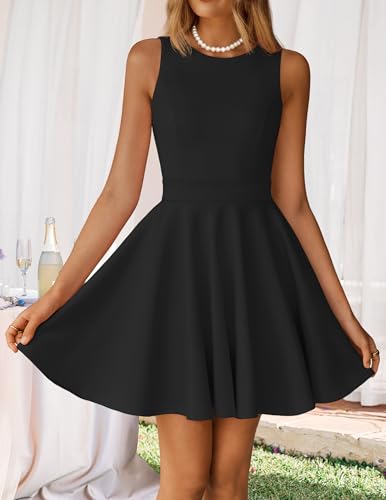 ZESICA Womens Summer Cocktail Party Mini Dress 2026 Spring Elegant Sleeveless Crewneck A-Line Short Date Night Prom Dresses