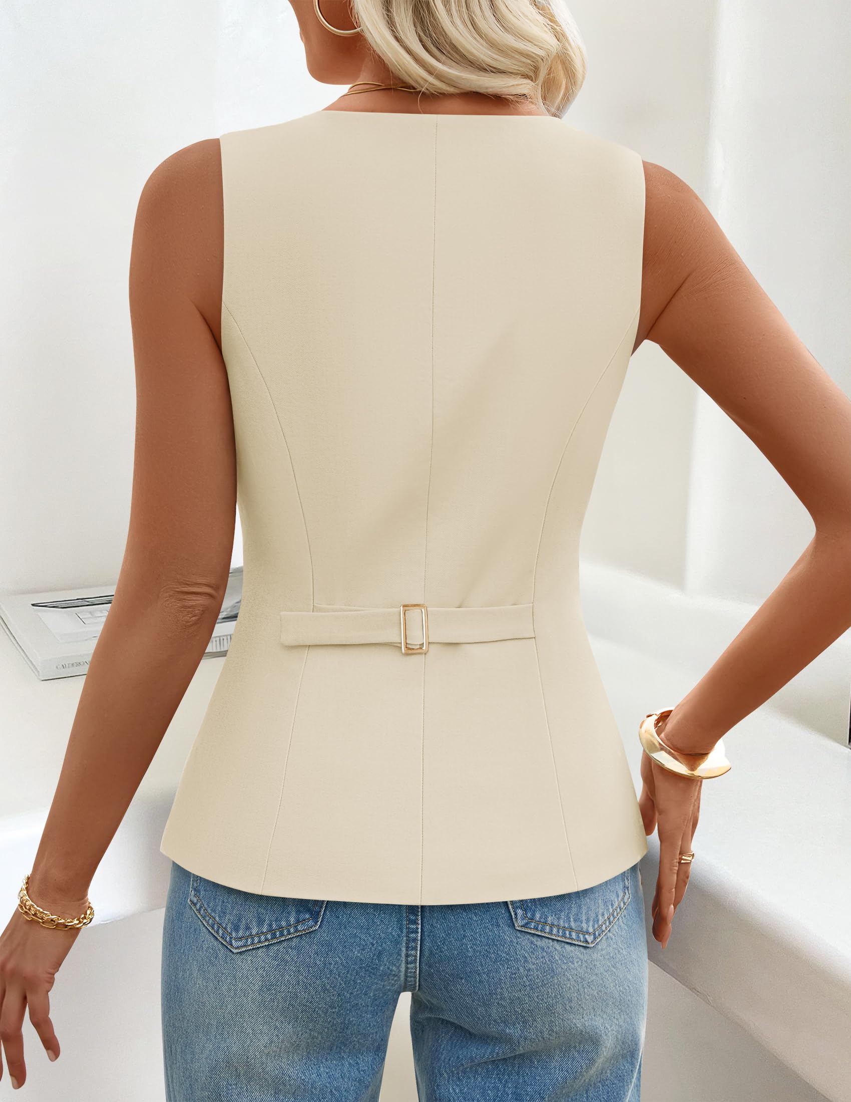 ZESICA Womens Summer Sleeveless Suit Vest 2026 Square Neck Button Down Vest Tops Business Casual Work Blazer Waistcoat